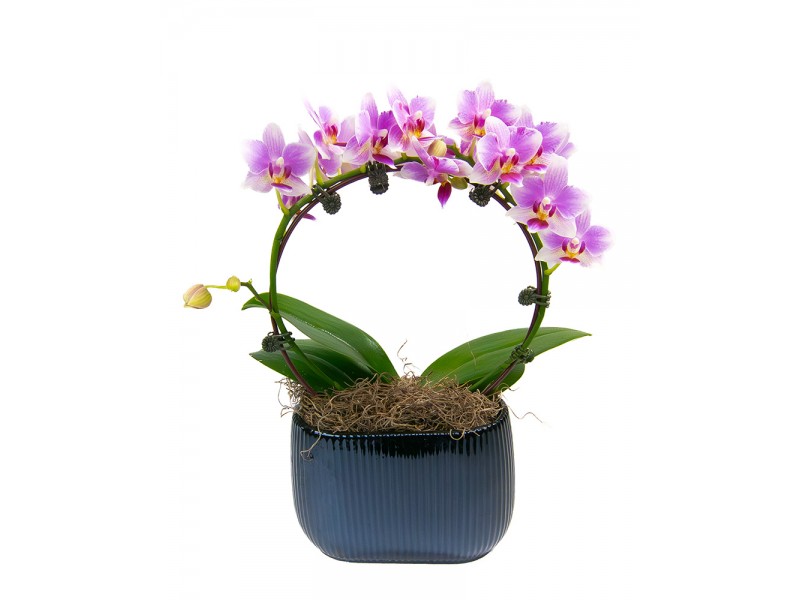 This miniature orchid is a great gift for beginner or expereinces plant lovers. The bloom and pot color vary - call the store to check avaiable options.